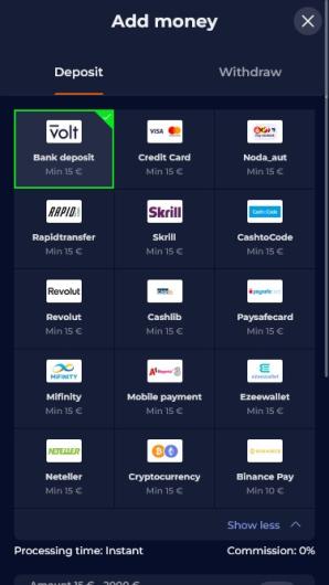 The company accepts various payment methods, including cryptocurrencies. Withdrawals must be made to the same payment option used for deposits.