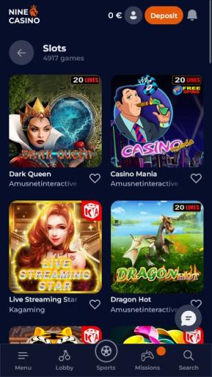 Nine Casino offers a wide range of games powered by top software providers such as Microgaming, Evolution Gaming, and more. Popular titles include slots, table games, and live casino games.