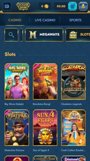 OceanSpin features a wide range of casino games and sports betting options, with popular titles in slots, table games, poker, game shows, roulette, blackjack, baccarat, dice, and sports betting on various events and leagues.