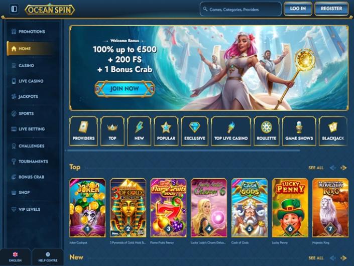OceanSpin casino lives up to its name with an ocean theme and a promise of a great betting experience, fast payouts, and responsive customer service.