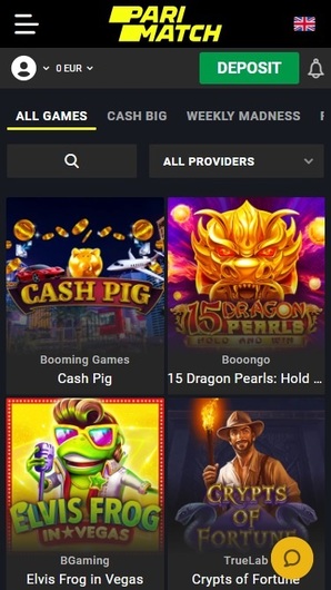 Parimatchwin hosts a vast collection of games, including slots, table games, card games, poker, and live dealer titles. The site features games from top providers like Playson, Yggdrasil, NetEnt, and more.