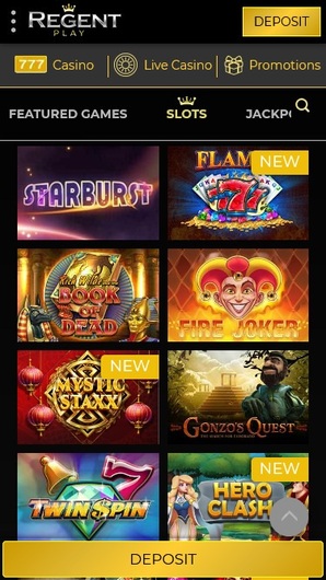 Regent Play offers over 800 popular games from industry-leading developers like Microgaming, NetEnt, and Evolution Gaming. The game selection includes slots, table games, live casino games, scratch cards, and jackpots.