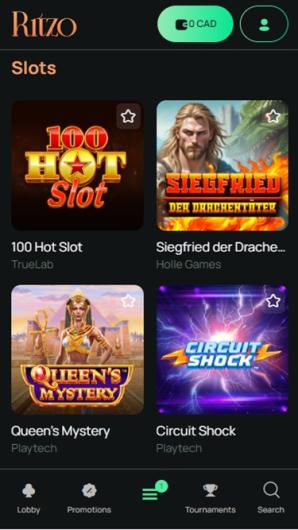Ritzo Casino offers an impressive gaming library with popular titles from well-regarded developers. Games include slots, table games, and live casino options.