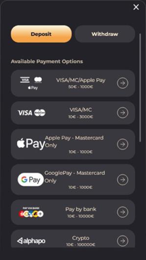 To sign up with this online casino, it is enough to provide an email and create a password – your account is created instantly without the need for email verification.