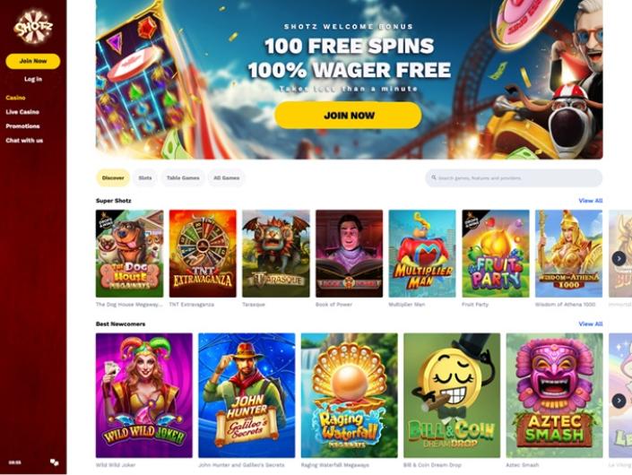 When it comes to online casinos, a seamless user experience and eye-catching design are key to standing out, and this is where Shotz Casino truly shines. The vibrant mix of reds, yellows, and green details is smartly integrated into the site’s layout, creating an inviting and energetic atmosphere. At the same time, the platform’s design steers clear of clutter. Every element, from the neatly organized side-menu to the fixed bar with its bright yellow Join Now button, is strategically placed for ease of use.