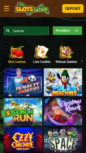 SlotSafari Casino offers a variety of popular games from well-regarded developers like Amatic, BetSoft, NetEnt, and more. The gaming library includes slots, table games, and live casino games.