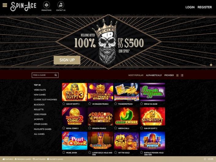 Spin – Ace Casino comes with a fairly good gaming library which holds carefully selected popular titles powered by some of the well – regarded iGaming industry developers.