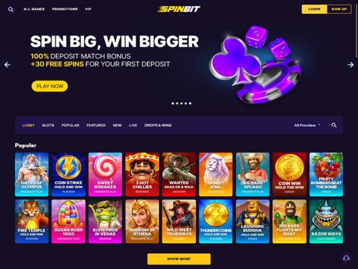 If you have been looking for an online gambling platform with a huge selection of games and non-sticky bonuses, then make time to read our in-depth review of SpinBit Casino. A modern website with a sleek interface, it has all conceivable and inconceivable slots, an impressive choice of roulette, blackjack, and poker, as well as a diverse collection of live dealer tables to suit all tastes and preferences. Players can choose between a decent range of popular cryptocurrencies or use their local currency and a convenient payment method.