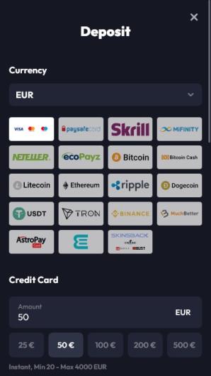 Deposits and withdrawals can be made using bank cards, wire transfer, eWallets, and cryptocurrencies. The venue enforces certain requirements for withdrawals, including a minimum wagering amount.