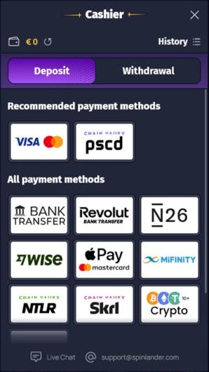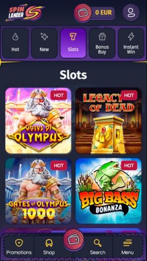 Spinlander Casino offers a wide variety of games including slots, table games, lotteries, virtual sports, poker, and live casino titles. The game lobby boasts several thousand games.