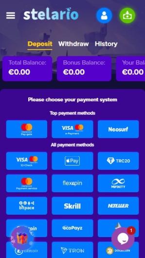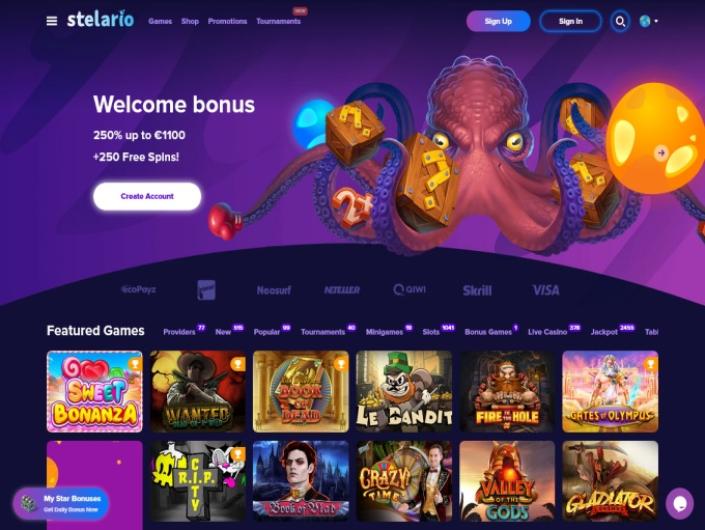 Stelario offers thousands of game titles from world-renowned developers, including slots, table games, live casino, and jackpots.