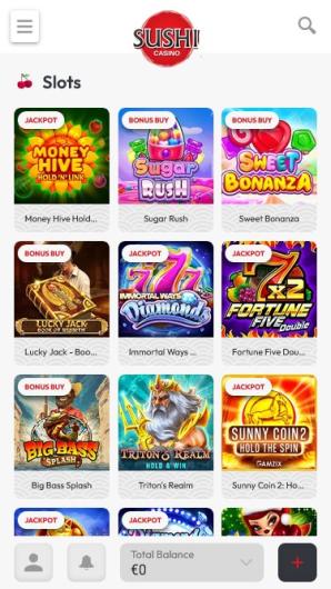 Sushi Casino offers a wide range of games, including popular slots, bonus-buy slots, jackpot slots, and live dealer games. The platform also features a comprehensive sports betting section.