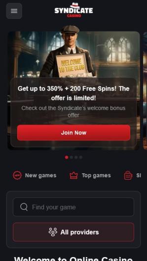 Syndicate Casino is owned by Dama N.V. company and is licensed and regulated by the Government of Curacao. In the lobby of the site, visitors will see the selections of the most popular and the newest titles on the offer in this place. You can filter releases by type and provider and check out the latest winners on the board.