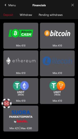 The casino accepts cryptocurrencies for banking operations.