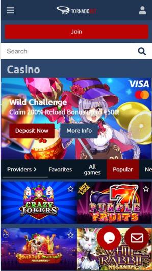TornadoBet Casino offers a mobile gaming experience for players who prefer to play on the go. Simply log in from your mobile or tablet with an internet connection to access your favorite games.