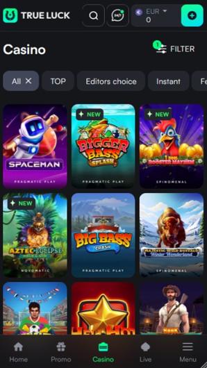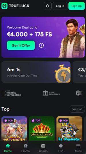 Trueluck has a very well-organized library brimming with gaming options from the top online casino software makers. The venue offers pretty much everything a self-respecting iGaming establishment should feature and then some more.