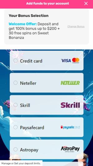 Vauhdikas Casino offers a decent choice of payment methods, including a Pay N Play option. Cryptocurrency payments are not accepted due to regulations. The casino has specific rules regarding withdrawals and maximum winnings.