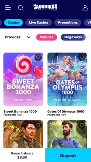 Vauhdikas Casino offers a wide selection of popular online slots and live dealer titles. The assortment of RNG table games and video poker is modest, with Jacks or Better being the only variant available.