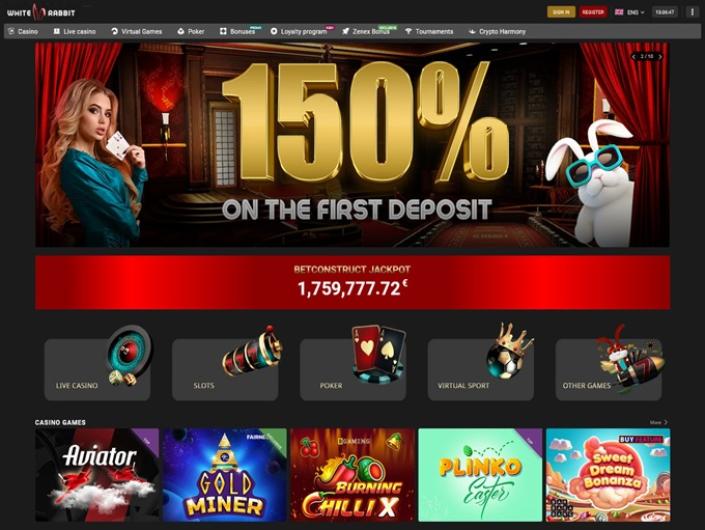 White Rabbit Casino offers a wide range of games from renowned software houses, including slots, live action, poker games, and virtual sports.