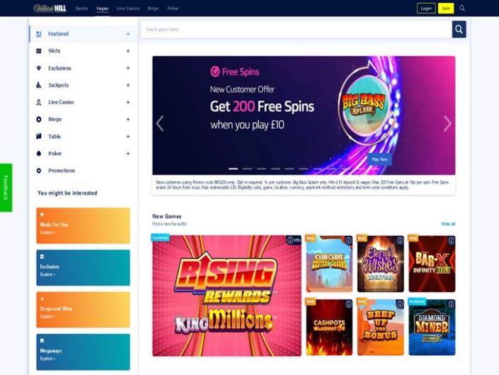 Online since 1998, William Hill offers video slots, table games, card variants, sports betting, bingo, and scratch cards across several large divisions including Vegas, Macau, Poker, and Betting.