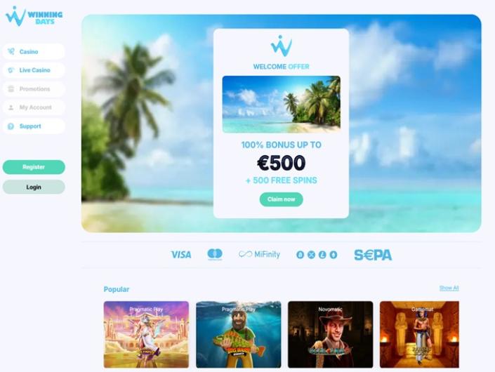 Being aware that the vast majority of clients prefer playing their favorite games while on the go, Winning Days casino made sure its platform can be accessed on various types of portable gadgets. Being equally intuitive and well-organized when launched on mobile phones and desktops, the website is simple to browse.