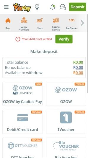 Withdrawals to a non-South African bank account will not be processed due to exchange control. KYC may be required. Further investigations may also be needed should a deposit and/or withdrawal of more than R5,000 be made, if the combined withdrawals in a 30 day period exceed R25,000, if the same bank is used to deposit into different YesPlay Casino accounts or if the deposit sum is withdrawn without any betting activity having taken place. Dormant accounts (6 months without activity) may be deleted and in addition to this a fee of R50 will be deducted every month until there is no more credit or if the account is reinstated. There are maximum win limits in place based on game and bet value. Winning bets may be subject to tax.